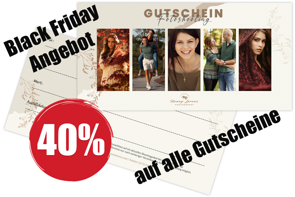 Black Friday Weeks – sichere dir 40% Ersparnis auf einen Gutschein für ein Fotoshooting!